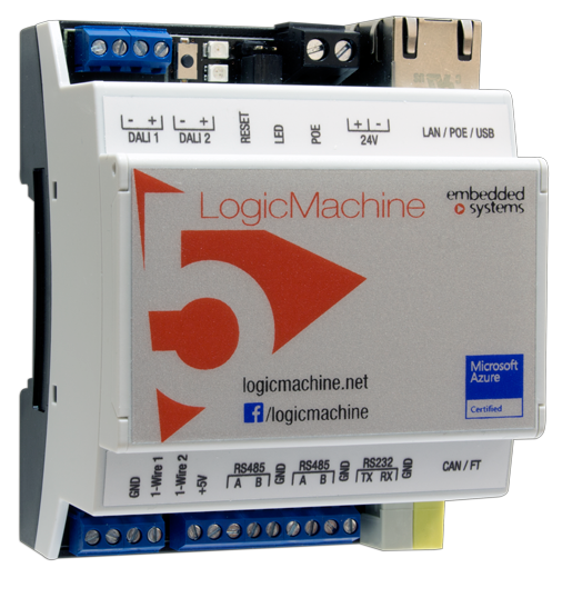 LM5 Power ist eine embedded Plattform mit integriertem Ethernet, USB, CAN FT, DALI, 1-Wire, serieller Schnittstellen. LM ermöglicht die Nutzung als ein Cross-Standard-Gateway, Logik-Engine, Visualisierungs-Plattform, IP-Router. Scripting-Vorlagen bieten einebenutzerfreundliche, flexible Konfigurationsschnittstelle und die Integration in einen Cloud / Web-Services, Drittanbieter-Geräten. Mit der Verwendung von benutzerdefinierten Scripts kann die LM gleichzeitig als Thermostat, Sicherheitspanel, Lichtregler, etc. arbeiten. LogicMachine APP-Store und externe App-Entwicklungsmöglichkeit ermöglichen es, die Gerätefunktionalität zu erweitern und sich an ein spezifisches Marktsegment anzupassen.